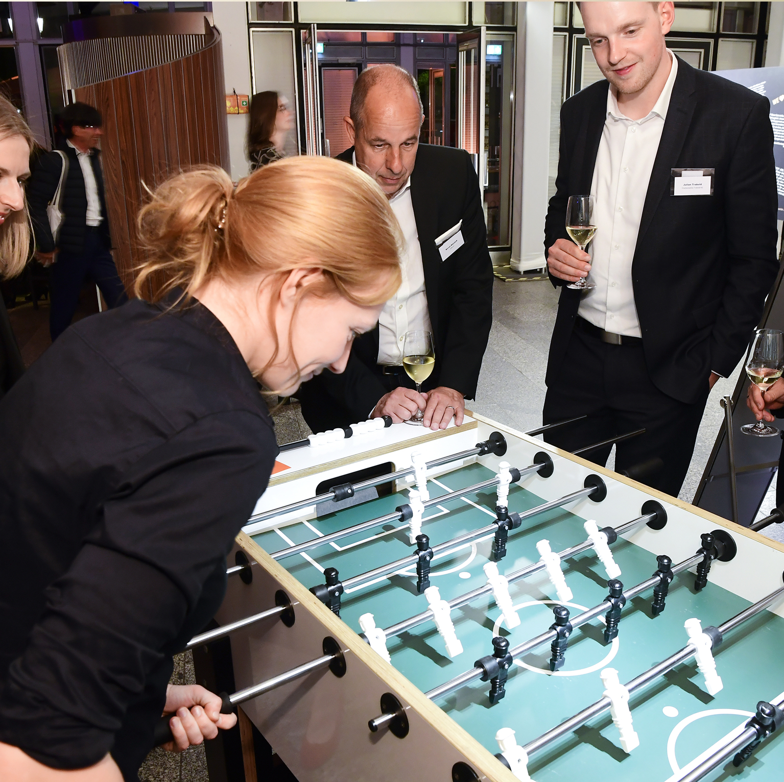 Stell dir vor, die Weltmeisterin im Tischfußball steht an deinem Messestand! Direkt nach dem ersten Kaffee strömen die BesucherInnen, treue StammkundInnen, und geschätzte KollegInnen, bereits an den Kickertisch.